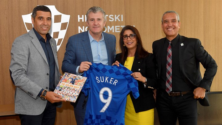 The Morocco delegation thanked president Šuker for the hospitality and presented their dream of Morocco 2026, including the details of government support. Moreover, Šuker and Naybet reflected upon their clashes in Spanish league, when the Moroccan defender played for Deportivo, and Šuker for Real Madrid. President Šuker handed over HNS gifts, as well as the national team jersey.