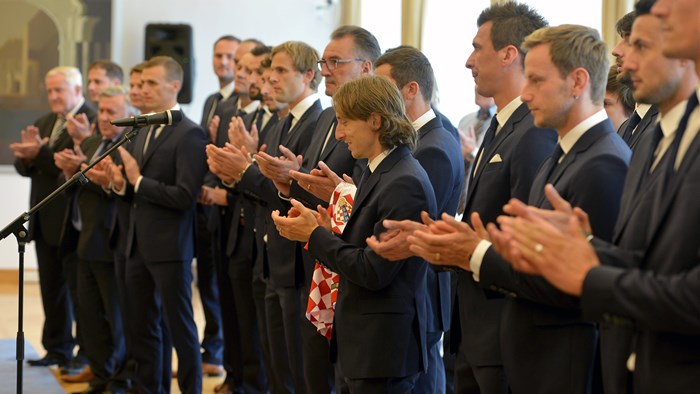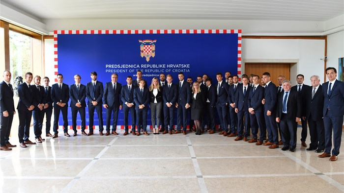 Predsjednica Republike Hrvatske Kolinda Grabar-Kitarović primila je u ponedjeljak u svom uredu igrače i stručni stožer Vatrenih uoči puta na Europsko prvenstvo, a primanju su nazočili i ministar znanosti, obrazovanja i sporta Predrag Šustar te pomoćnica za sport Janica Kostelić.