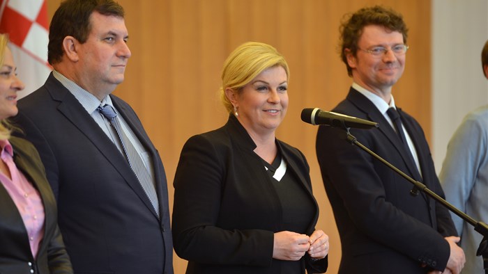 "Iznimno mi je drago što ste došli, da vam mogu zaželjeti svu sreću i puno uspjeha na predstojećem Europskom prvenstvu u svoje osobno ime i u ime svih hrvatskih građana. Hrvatska, nažalost, ovih dana prolazi kroz turbulentno razdoblje na političkoj sceni, ali život ide dalje i želim da upravo ovaj sastanak s vama svima pruži nadu i dobar primjer kako se svi u Hrvatskoj možemo ujediniti u ideji zajedništva, podržavajući reprezentaciju uz vatreno srce", poručila je Grabar-Kitarović.