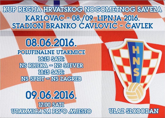 Na stadionu Branko Čavlović-Čavlek u Karlovcu ove se srijede i četvrtka održava Kup regija Hrvatskog nogometnog saveza, a na kojem sudjeluju NS Rijeka, NS Sjever, NS Split i NS Zagreb.