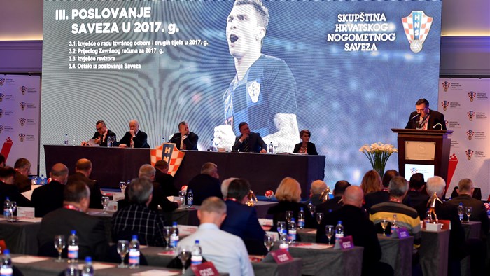 Skupština Hrvatskog nogometnog saveza održana je u zagrebačkom hotelu Sheraton, a dnevni red uključivao je i prihvaćanje izvješća o radu Izvršnog odbora i drugih tijela u 2017. godini, prijedlog završnog računa za proteklu godinu te izvješće revizora. Prisustvovalo je 39 članova, uz 17 odsutnih.