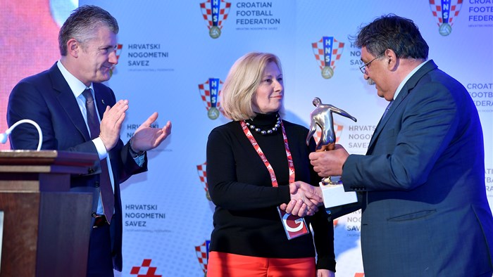 "Zahvaljujem u ime cijele obitelji. Tata bi bio sretan zbog ovog trofeja, živio je i volio nogomet. Hvala Hrvatskom nogometnom savezu na ovom priznanju", rekla je kći Rudolfa Krznarića, Valerija Malović, koja je primila nagradu u ime svog oca.