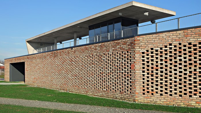 Svi korišteni materijali izabrani su u duhu osnovne funkcionalnosti te prevladava natur-beton u interijeru i eksterijeru. Suvremenim pristupom građevina se u potpunosti uklapa u kontekst ruralnog krajolika karakterističan za Slavoniju i selo Gunju.