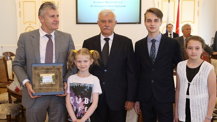 Georgij Poltavčenko tom je prigodom ugostio predsjednika HNS-a Davora Šukera, izvršnog direktora Damira Vrbanovića, višeg savjetnika predsjednika Zorislava Srebrića, match managera Zorana Cvrka te suradnika stručnog stožera reprezentacije Ognjena Vukojevića.