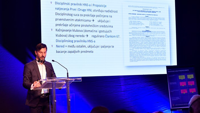 "Povratne su informacije dobre, i nastavit ćemo s dosadašnjim načinom rada. UEFA nas podržava i bit će još HNS-ovih seminara na temu raznih aspekata organizacije utakmice. Naša suradnja s MUP-om traje, oko svih složenih poslova, a postoji mogućnost napretka i u suradnji sa zaštitarskim tvrtkama. Ne vjerujem u teorije zavjera, pomoć zaštitara pri unošenju pirotehnike, a huligani svakodnevno pronalaze nove načine unosa i kroz međusobnu komunikaciju diljem Europe, uključujući i dostavljanje prije utakmice. Osim toga, reakcija zaštitara i policije u trenutku masovne upotrebe pirotehnike može izazvati još teže posljedice te će i to biti jedna od tema ove konferencije. Podižemo kvalitetu sigurnosti i infrastrukture. Značajan doprinos mogu dati i mediji", zaključio je Marković.