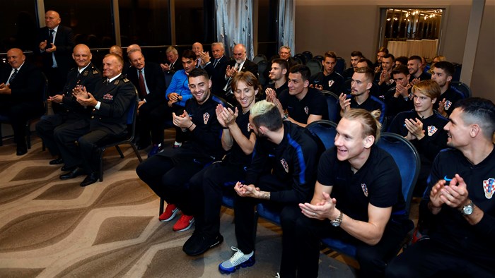 "Kad smo vas gledali kako pobjeđujete na Svjetskom prvenstvu, kako se borite jedni za druge, mi smo se identificirali s vama - naša je vojska rasla iz dana u dan slično poput vaše reprezentacije u Rusiji - i bilo nam je drago što ste promovirali Hrvatsku. Nitko je nije mogao tako predstaviti cijelom svijetu kao što ste vi učinili. Željeli smo vam zahvaliti i ostaviti vam ove prigodne darove za uspomenu", poručio je Miljavac.