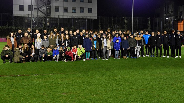 Otvorenom su treningu prisustvovala i djeca iz Caritasovog dječjeg doma, koja su svjetske doprvake pratila pri izlasku na teren, nakon čega je uslijedilo zajedničko fotografiranje.