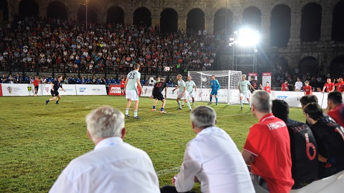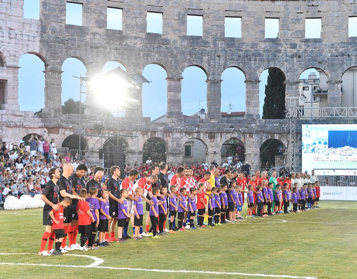 U sklopu suradnje Turističke zajednice Istarske županije i Bayerna iz Münchena, pulski amfiteatar ugostio je u ponedjeljak nogometni spektakl, malonogometni dvoboj proslavljenih članova Vatrenih i njemačkog velikana, uz revijalnu dječju utakmicu te zabavni program.