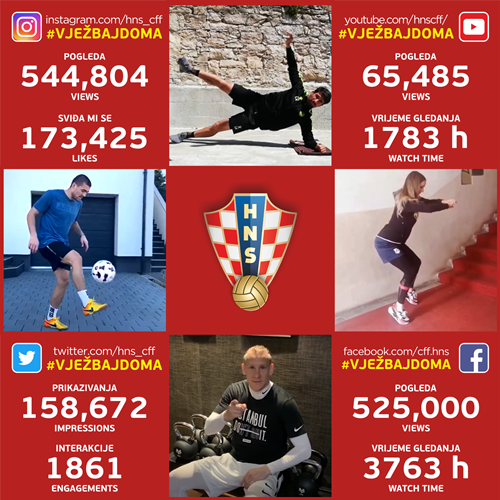 Završne brojke uistinu su impresivne. 35 treninga objavljeno je na četiri HNS-ova kanala: YouTubeu, Facebooku, Instagramu i Twitteru, pri čemu su videi prikazani više od milijun puta. Samo na YouTubeu i Facebooku ukupno vrijeme gledanja je više od 5500 sati, a na Facebooku i Instagramu videi su prikupili gotovo 200,000 oznaka "sviđa mi se".