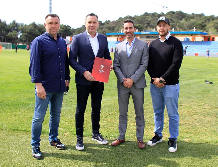 Izvršni direktor HNS-a, Marijan Kustić, potpisao je ugovor s predsjednikom šibenskoga prvoligaša, Josipom Bulatom, odnosno predstavnicima vlasnika, kompanije FSI d.o.o., Franciscom Cardonom i Eduardom Zapatom. Hrvatski nogometni savez predstavljali su i član Izvršnog odbora i predsjednik Komisije za infrastrukturu, Nenad Horvatić, odnosno voditeljica infrastrukture, Andrea Dokuš.