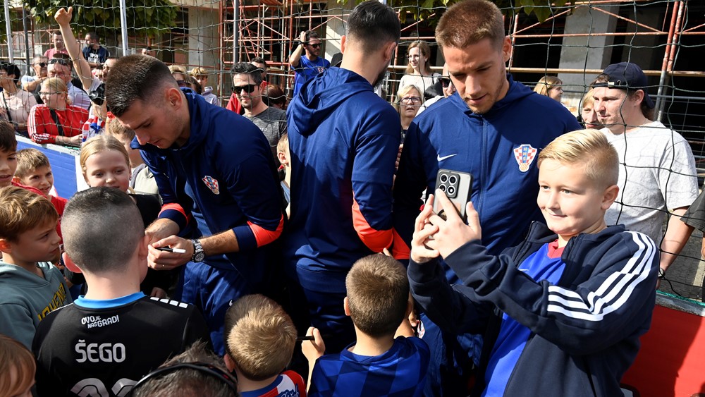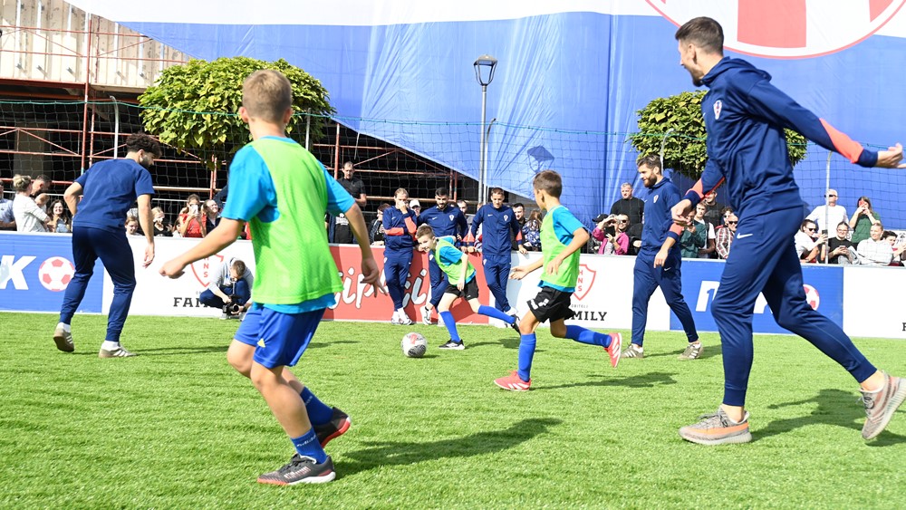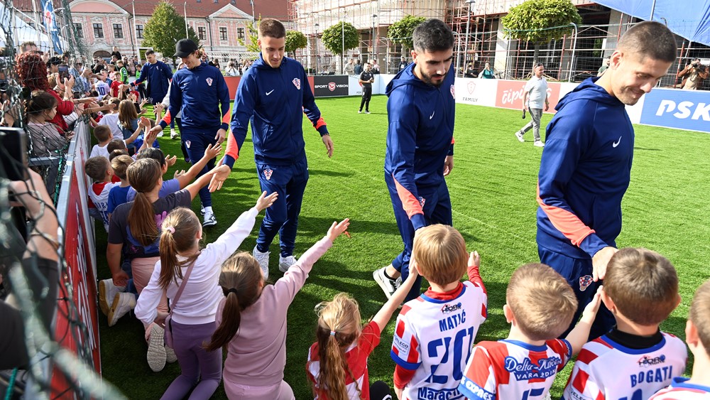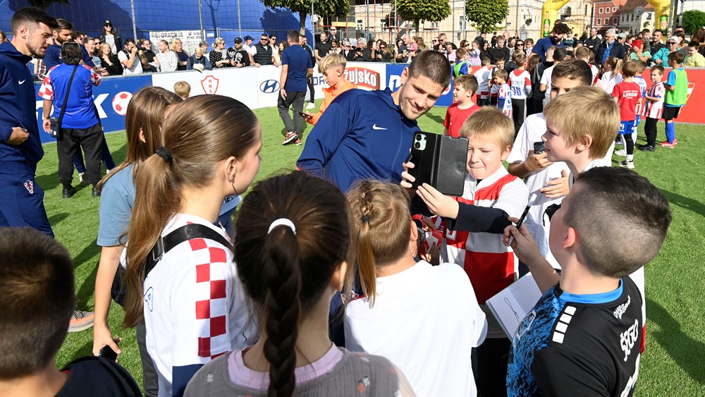 Andrej Kramarić, Dominik Livaković, Joško Gvardiol, Petar Sučić, Duje Ćaleta-Car, Mario Pašalić, Josip Šutalo i Kristijan Jakić družili su se s varaždinskim mališanima koji su u velikom broju okupirali improvizirani teren s umjetnom travom i uživali rijetku privilegiju u neposrednom kontaktu sa svojim nogometnim idolima.