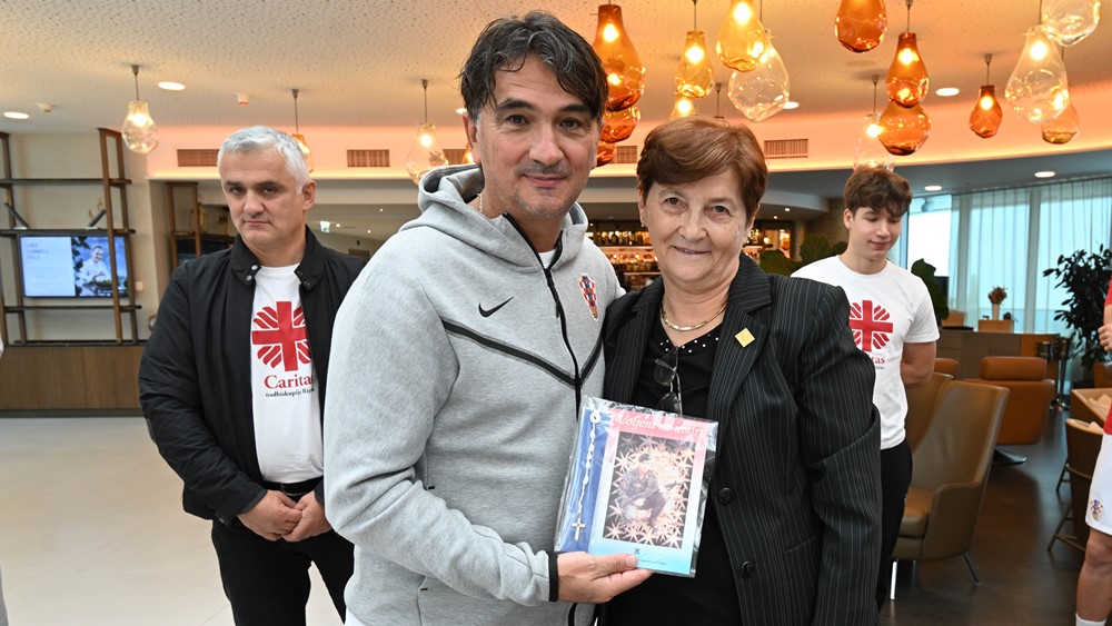 Izbornika i reprezentativce pozdravile su ravnateljica Caritasa Riječke nadbiskupije Marijana Medanić, te majke poginulih branitelja Marija Kovač i Roža Salopek.