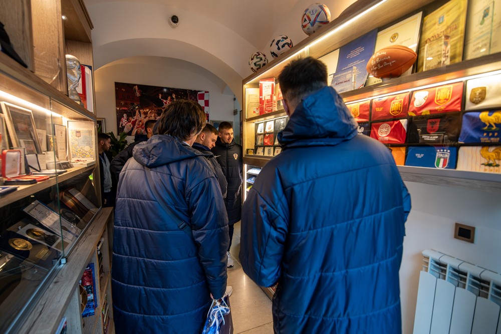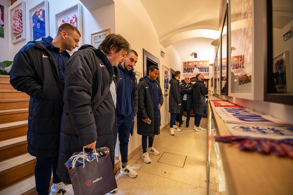 “Pozdravljam vas u svoje osobno ime, ali i kao predsjednik Županijskog nogometnog saveza te dopredsjednik Hrvatskog nogometnog saveza. Pozdrav prenosim i u ime predsjednika HNS-a, Marijana Kustića, koji nažalost danas nije mogao biti ovdje, kao i izbornika Zlatka Dalića, koji je u inozemstvu, što ga je spriječilo u odazivu. Obišli ste ovaj objekt i vidjeli lijepe uspomene i trofeje te se nadam da će se ovdje jednog dana naći i neki od vaših dresova s posvetom. Nadam se da ćete dostojno predstavljati Hrvatsku na skorašnjem Europskom prvenstvu, ulazimo u 2026. godinu u kojoj HNS ima velika očekivanja, a čeka nas i Svjetsko prvenstvo u Kanadi, Meksiku i SAD-u. Nadam se da ste spremni i zdravi, a HNS vam je osigurao dobre uvjete. Želim vam puno uspjeha i ponosno nosite dres hrvatske reprezentacije”, rekao je Horvatić.